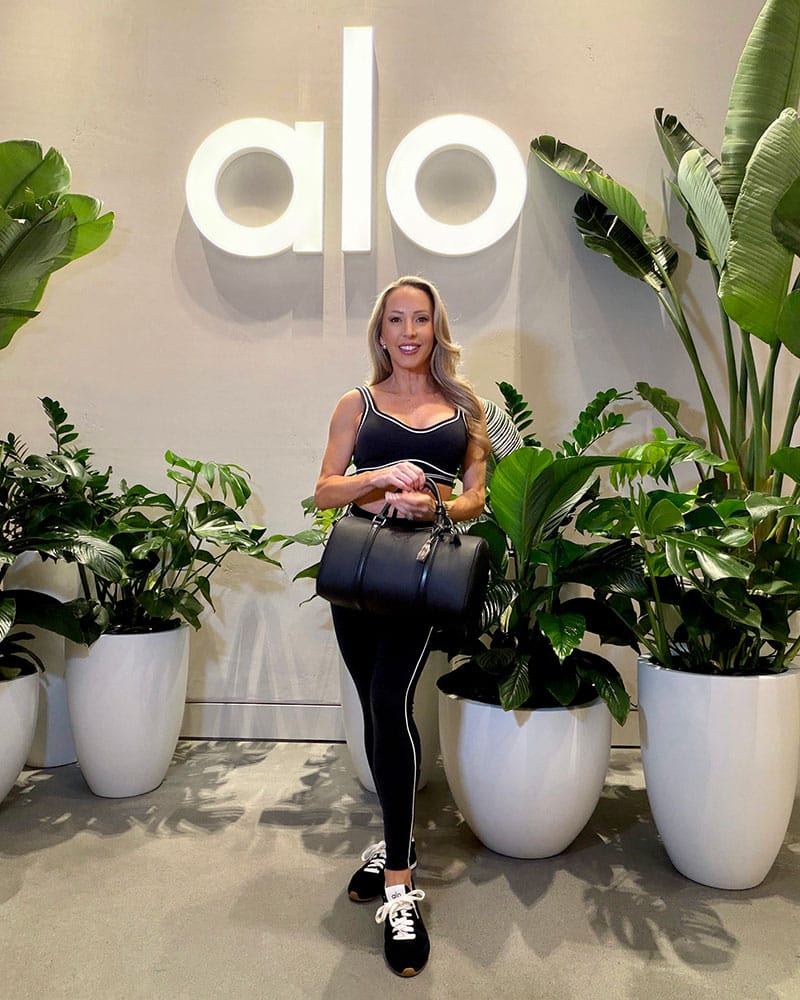 Style them with everything from monochromatic looks with a matching set or an all white outfit. These black suede ALO sneakers absolutely nails this shoe trend and go with everything!
